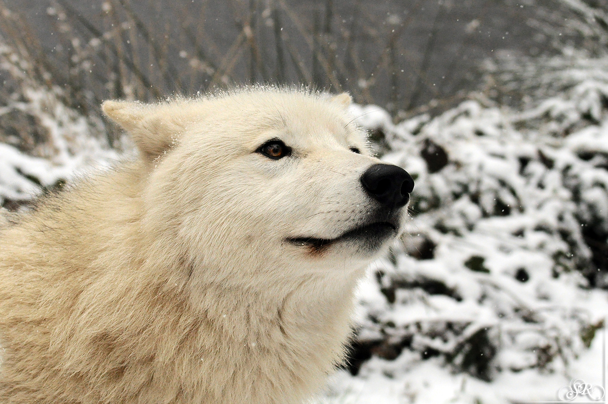 - #inuq #2013 #auheim #white #weiß #polar #arctic #polarwolf #arktiswolf #male #männlich #rüde #1 year #1 jahr #winter #snow #schnee